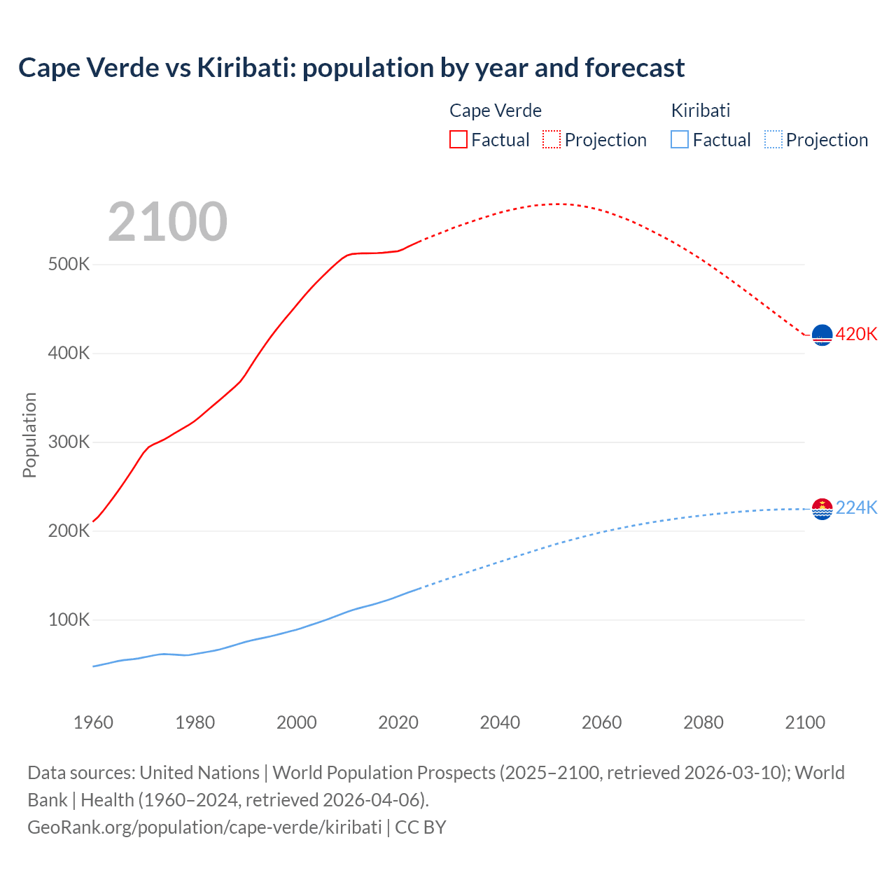 - Cape Verde's population is 3.82 times bigger than Kiribati's.
