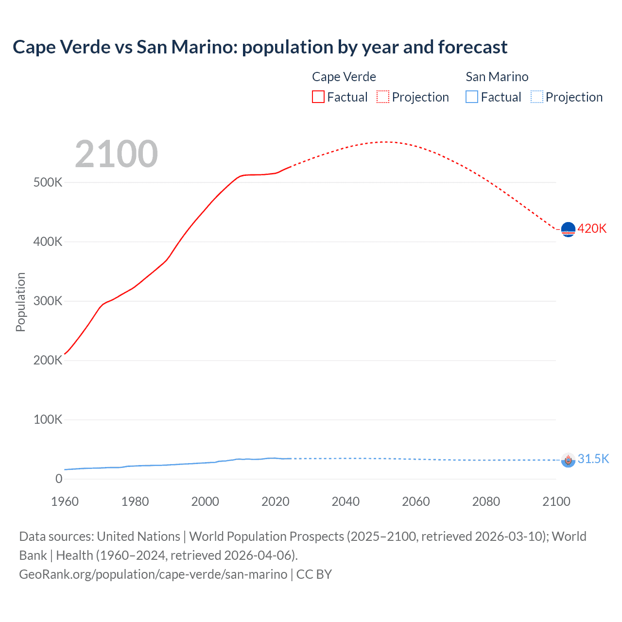 Cape Verde vs San Marino: population by year and forecast