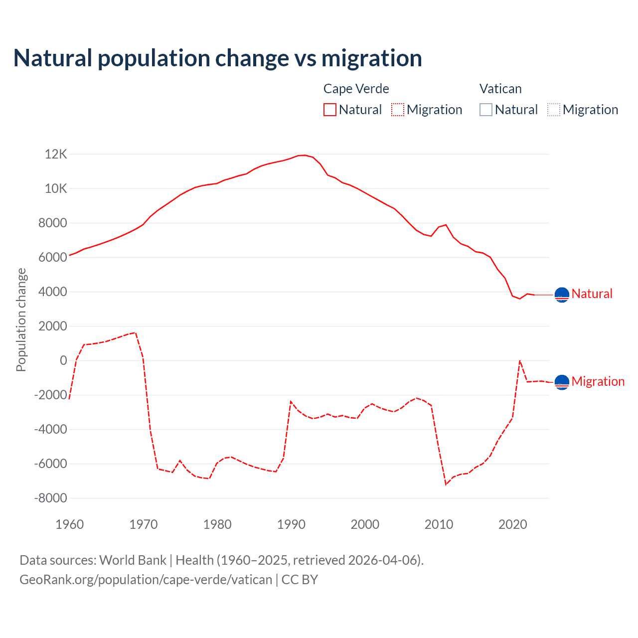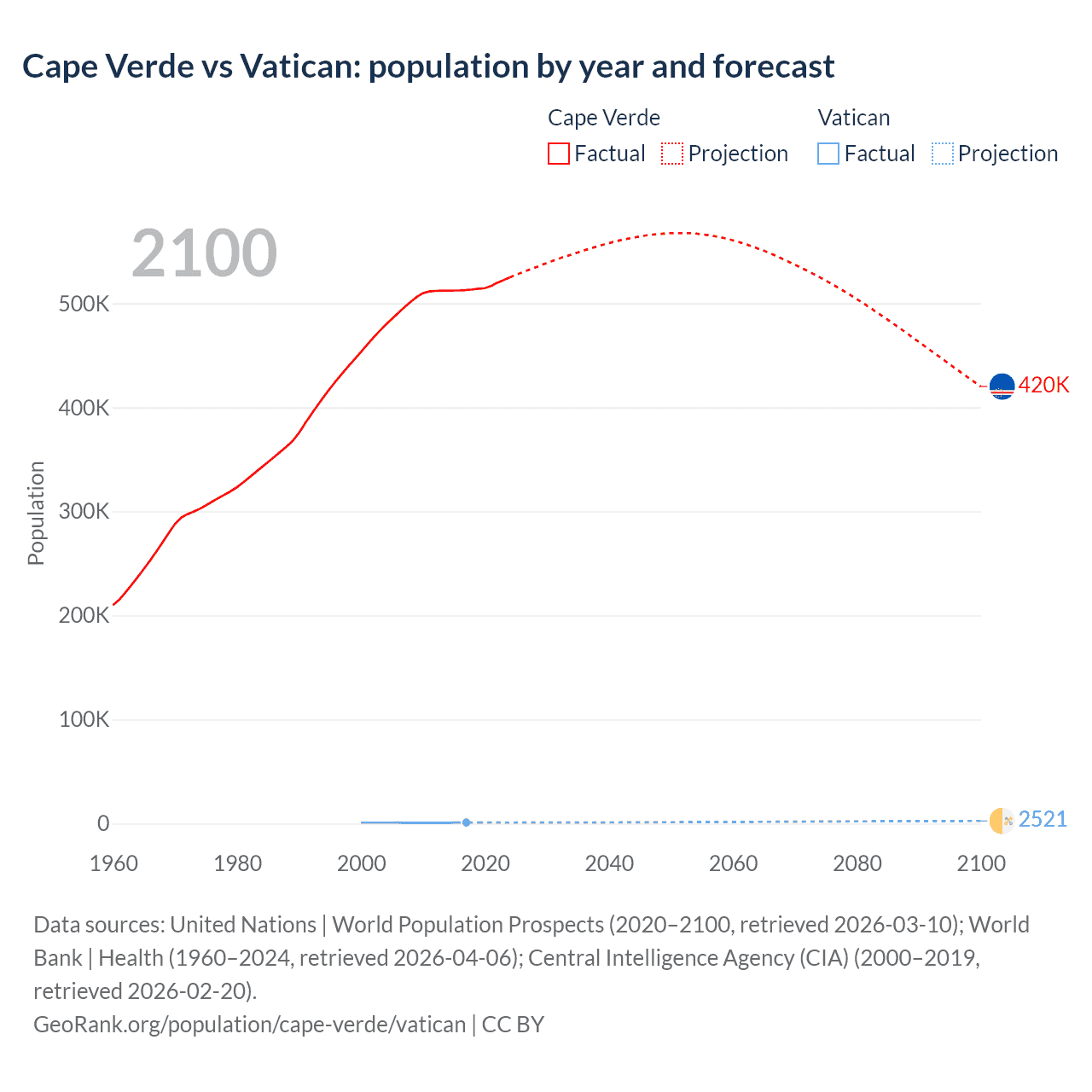 Population differences between Cape Verde and the Vatican