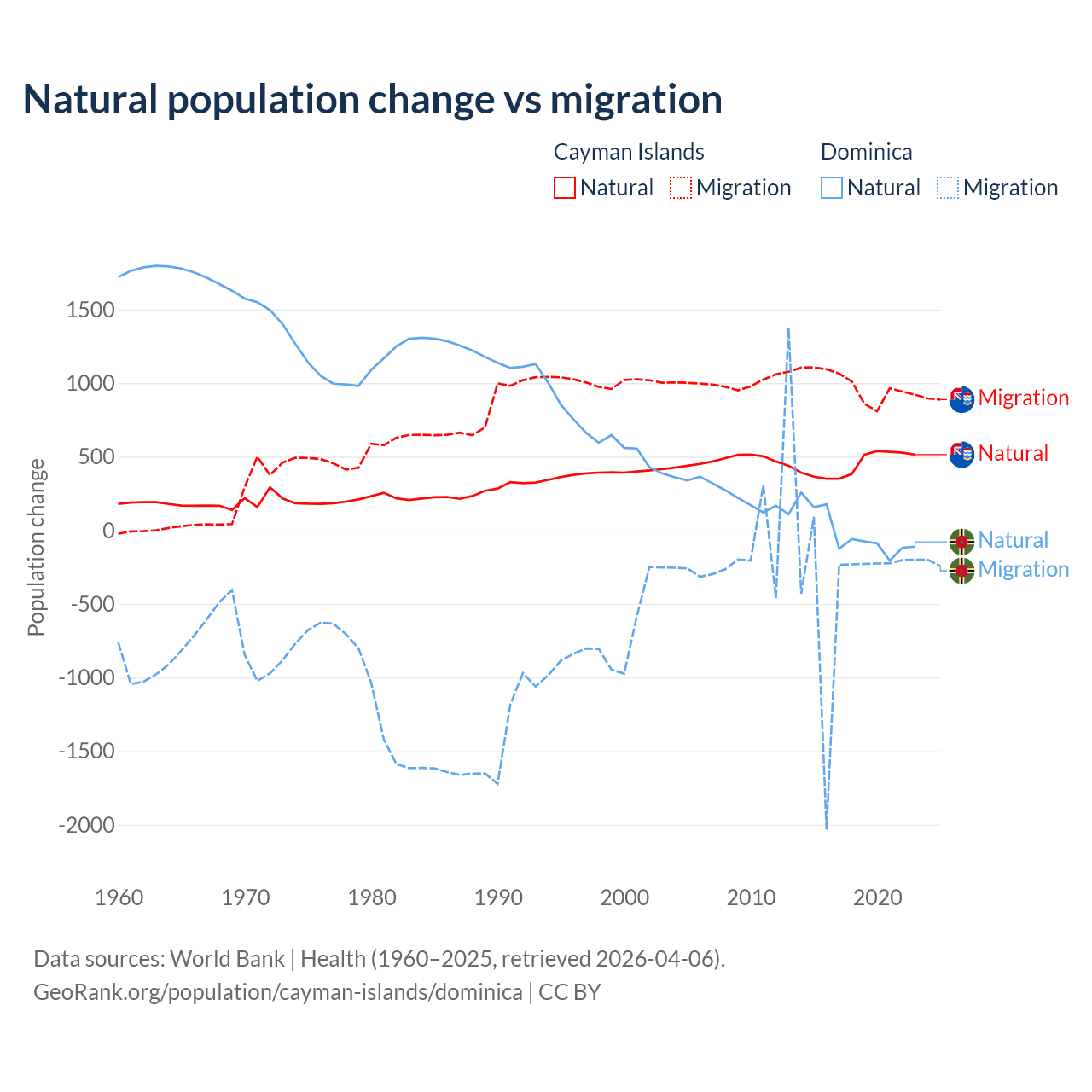 Population differences between the Cayman Islands and Dominica