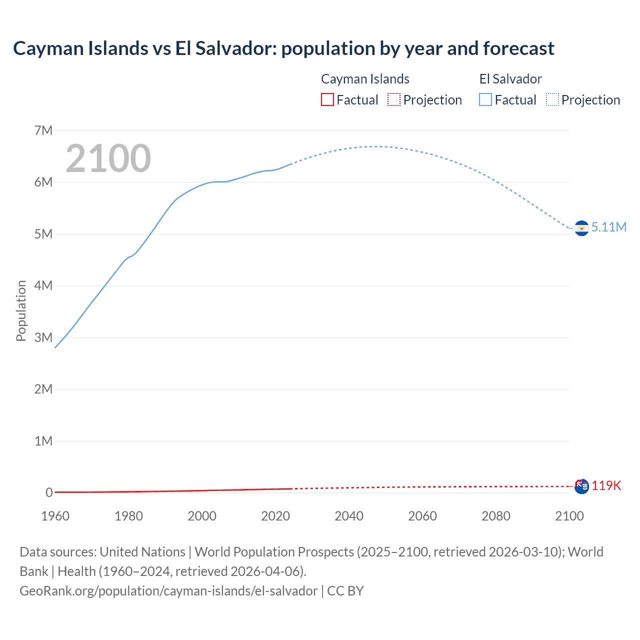 Cayman Islands vs El Salvador: population by year and forecast