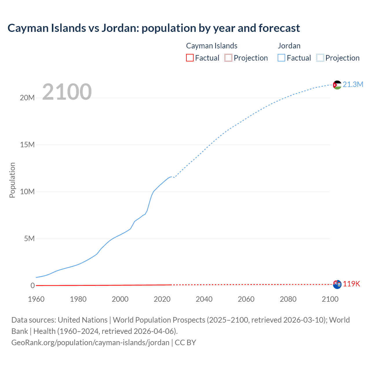 Population differences between the Cayman Islands and Jordan