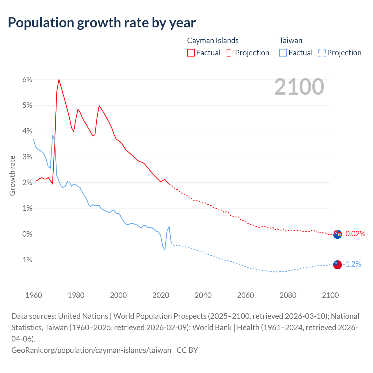 Data sources: World Bank | Health (1960–2024, retrieved 2026-04-06); United Nations | World Population Prospects (1960–2026, retrieved 2026-03-10); U.S. Census Bureau (1960–2025, retrieved 2026-02-08); National Statistics, Taiwan (1960–2025, retrieved 2026-02-09); Central Intelligence Agency (CIA) (2000–2019, retrieved 2026-02-20).