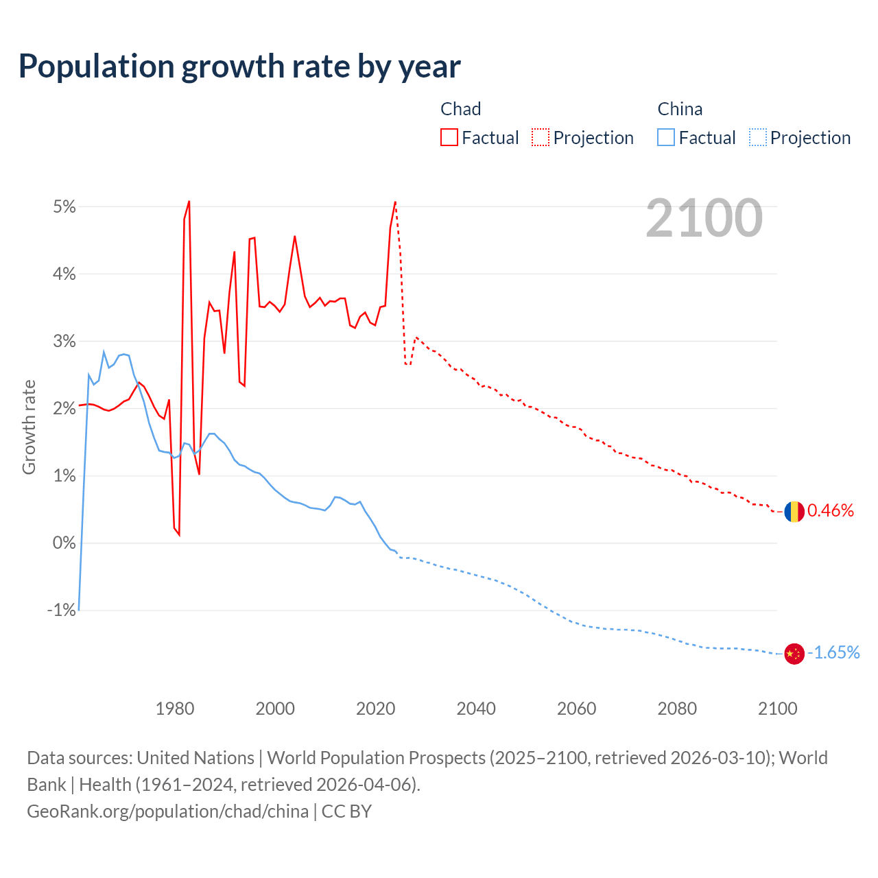 - For the last 10 years, Chad has had an average growth rate of +3.65% per year vs +0.3% in China.