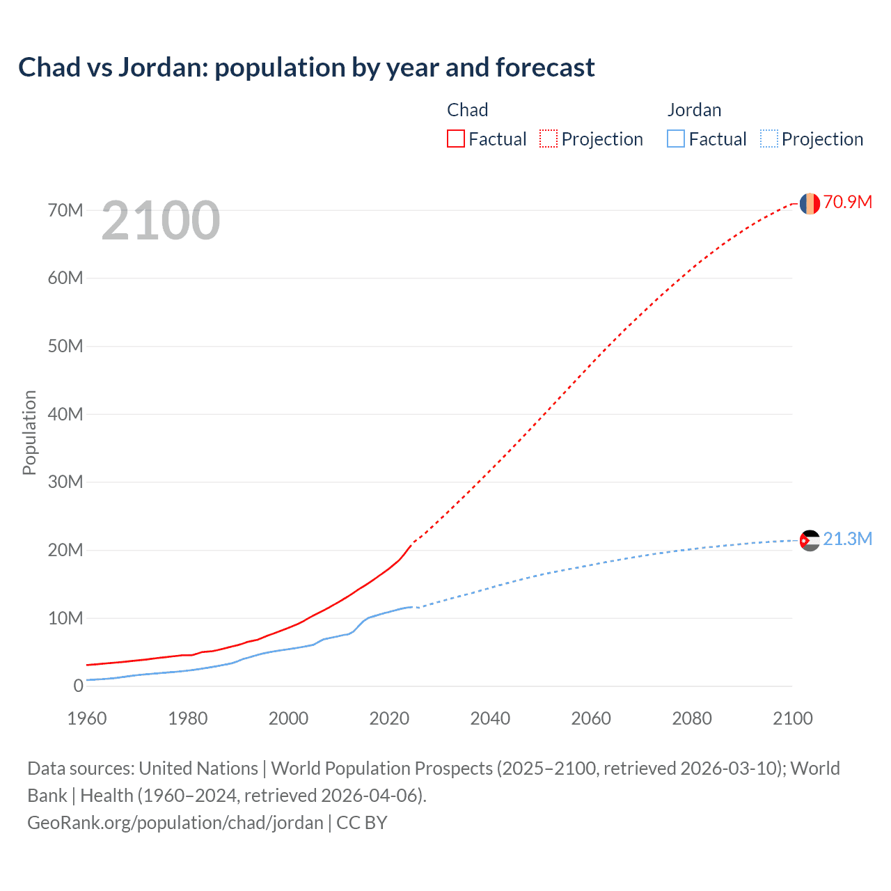 Population differences between Chad and Jordan