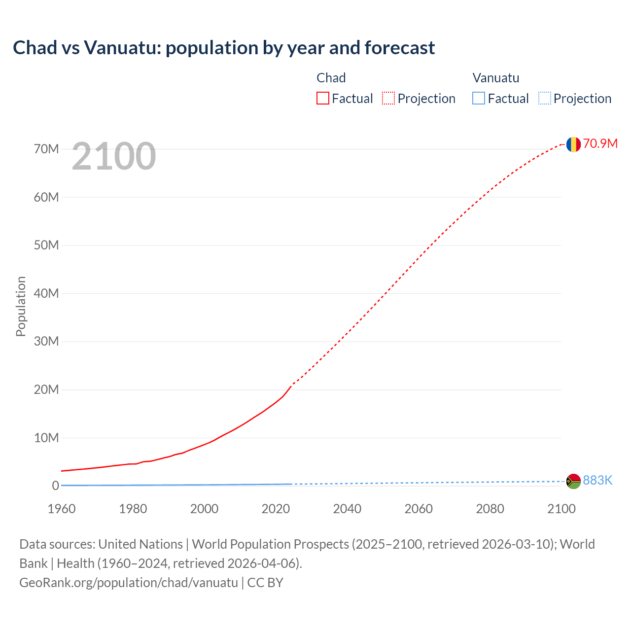 - Chad's population is 63.5 times bigger than Vanuatu's.