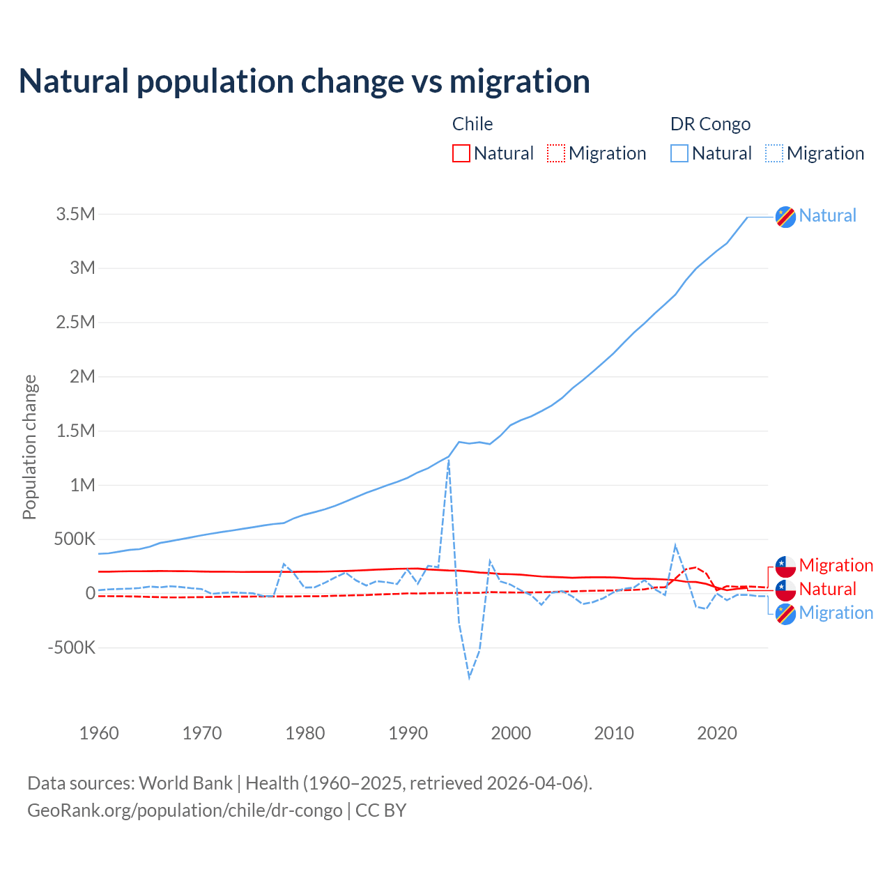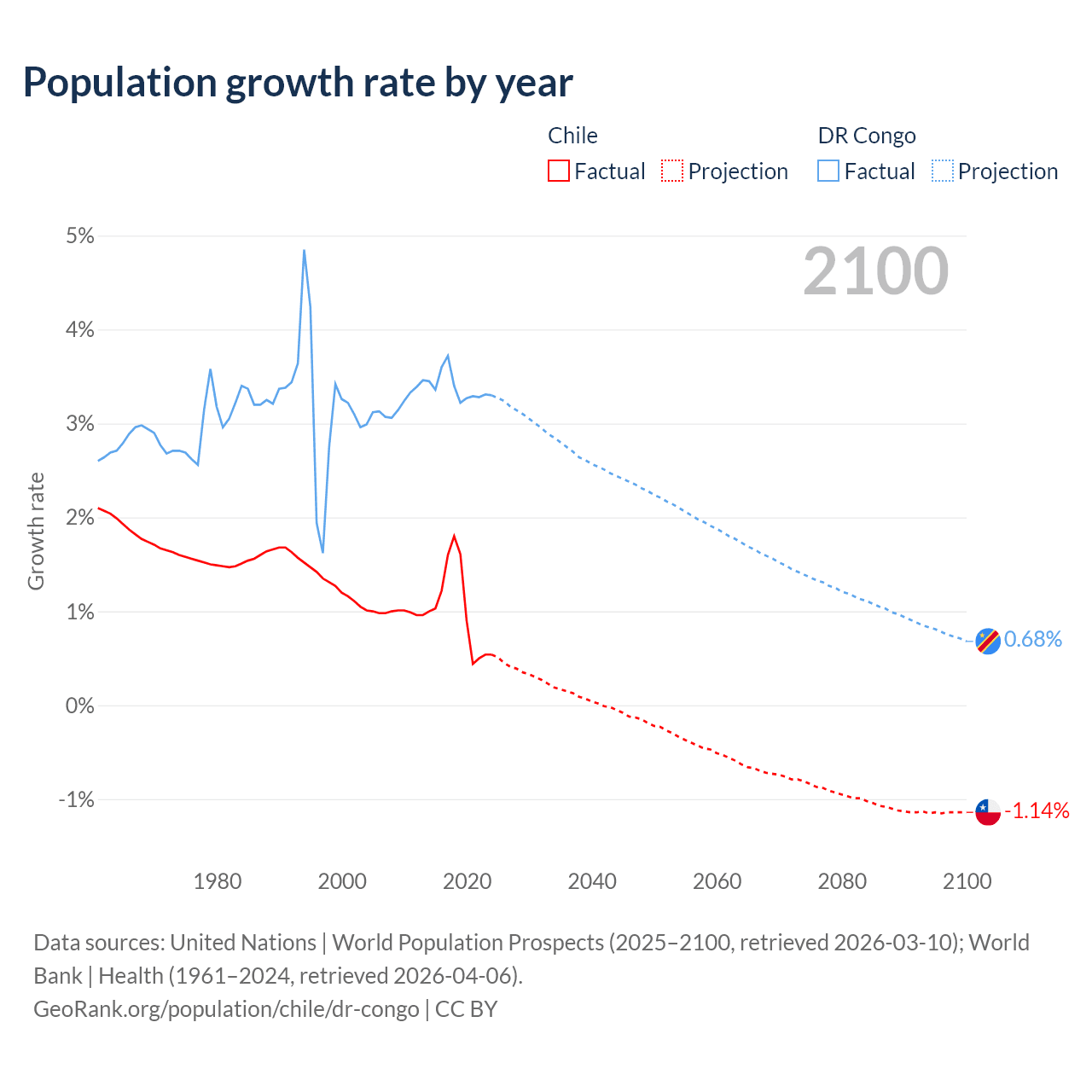 Population differences between Chile and the DR Congo