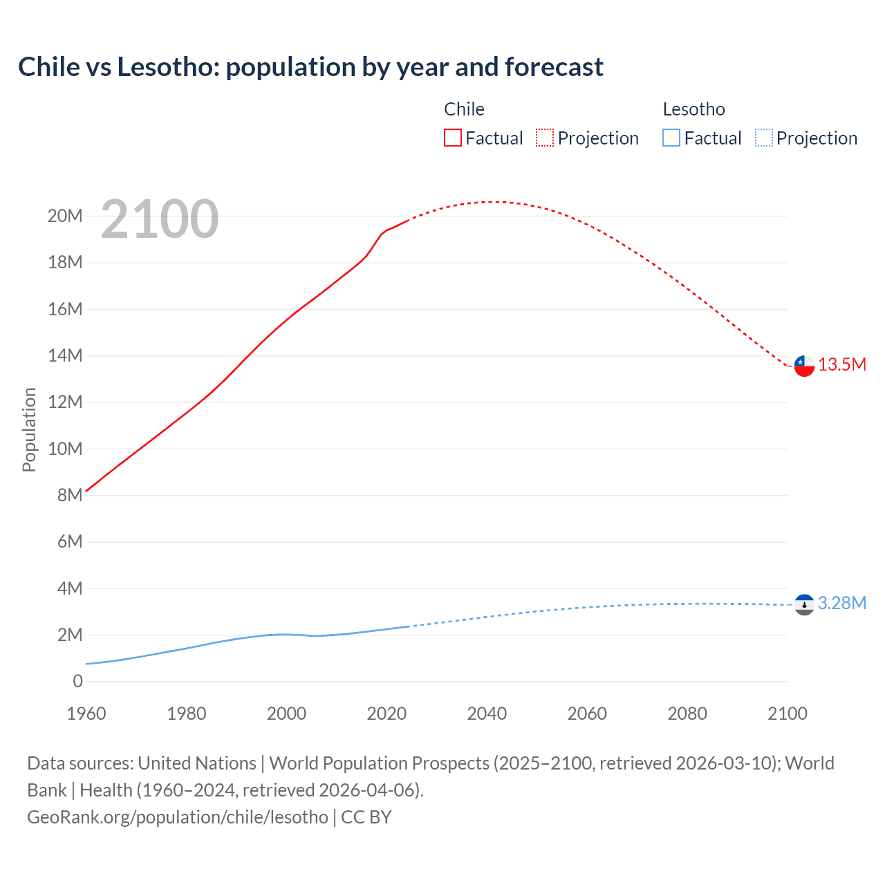 Population differences between Chile and Lesotho