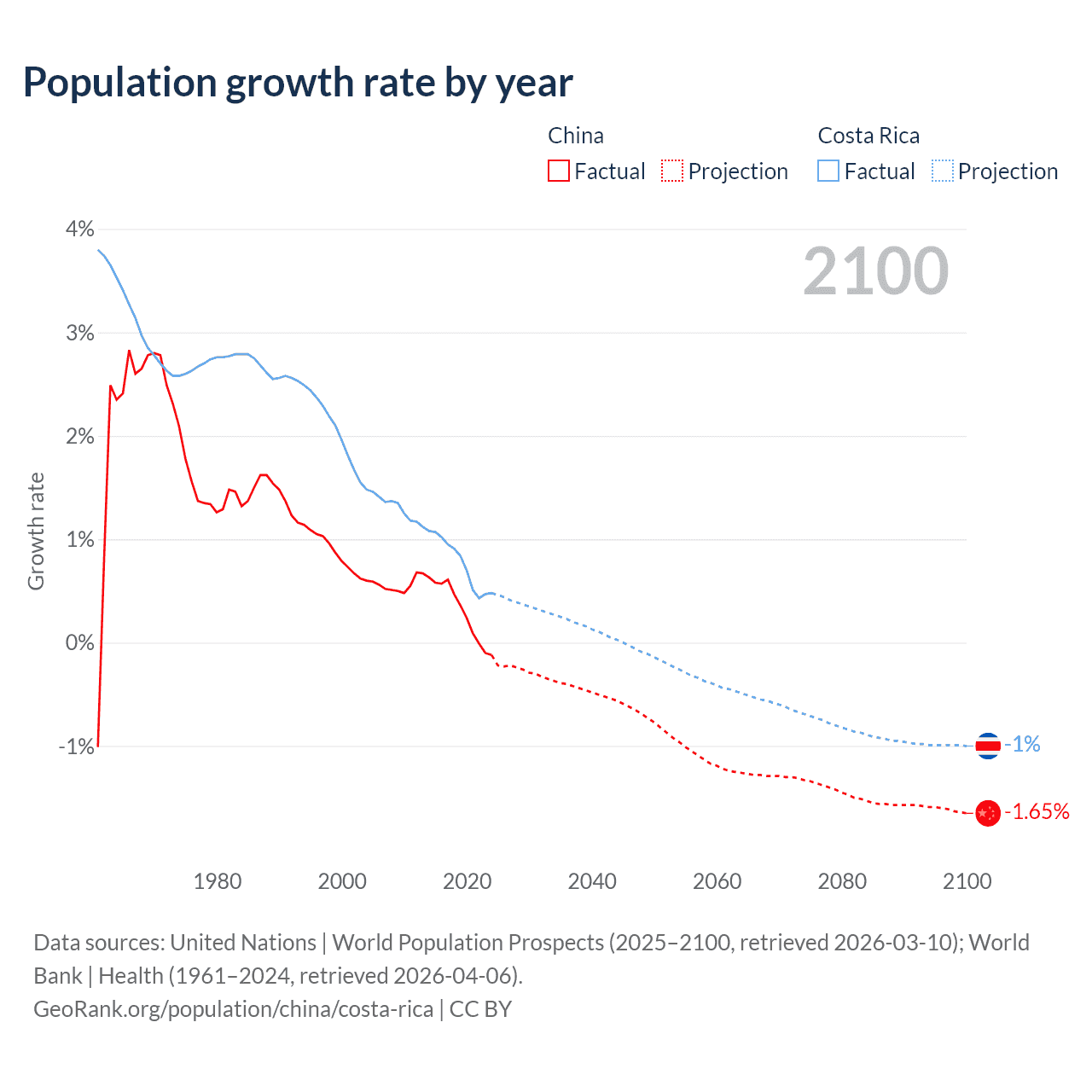 Data sources: World Bank | Health (1960–2024, retrieved 2026-04-06); United Nations | World Population Prospects (1960–2026, retrieved 2026-03-10); U.S. Census Bureau (1960–2025, retrieved 2026-02-08); Central Intelligence Agency (CIA) (2000–2019, retrieved 2026-02-20).