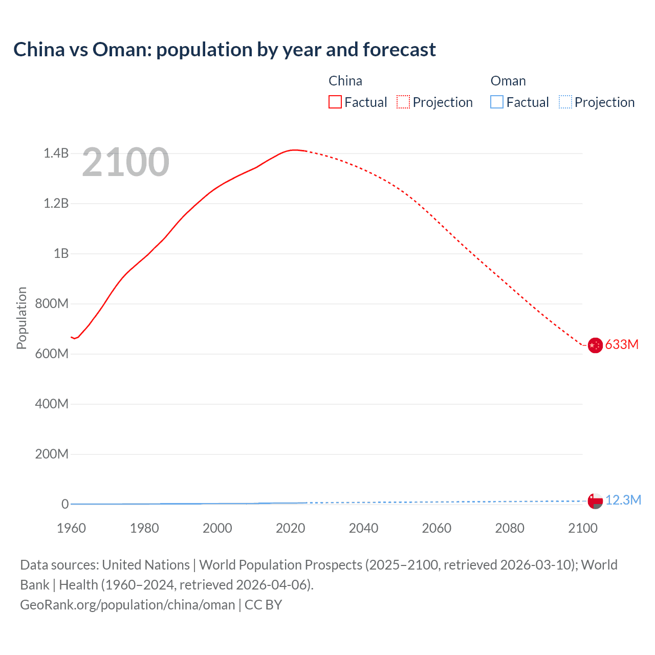 China vs Oman: population by year and forecast