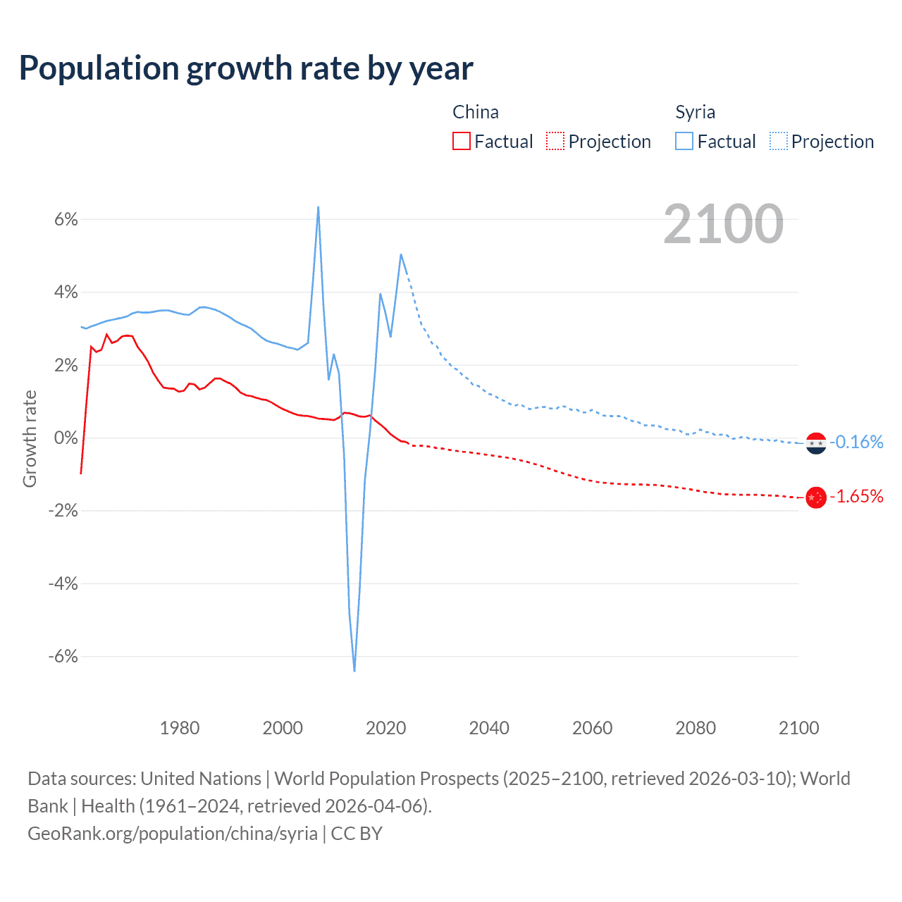 - For the last 10 years, China has had an average growth rate of +0.3% per year vs +1.25% in Syria.