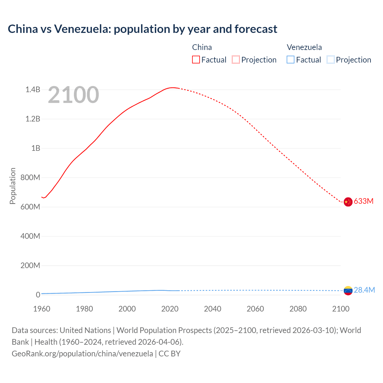 China vs Venezuela: population by year and forecast