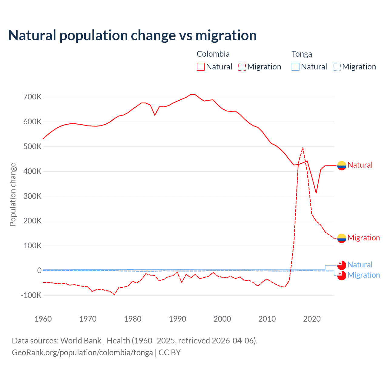 Population differences between Colombia and Tonga