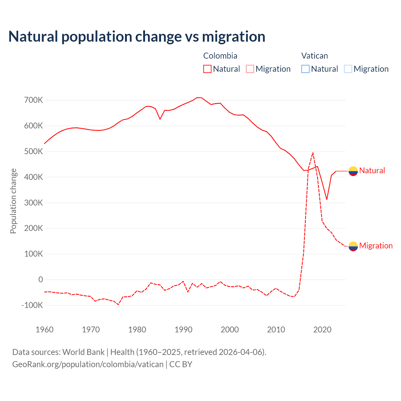- For the last 10 years, Colombia has had an average growth rate of +1.25% per year vs +1.9% in the Vatican.