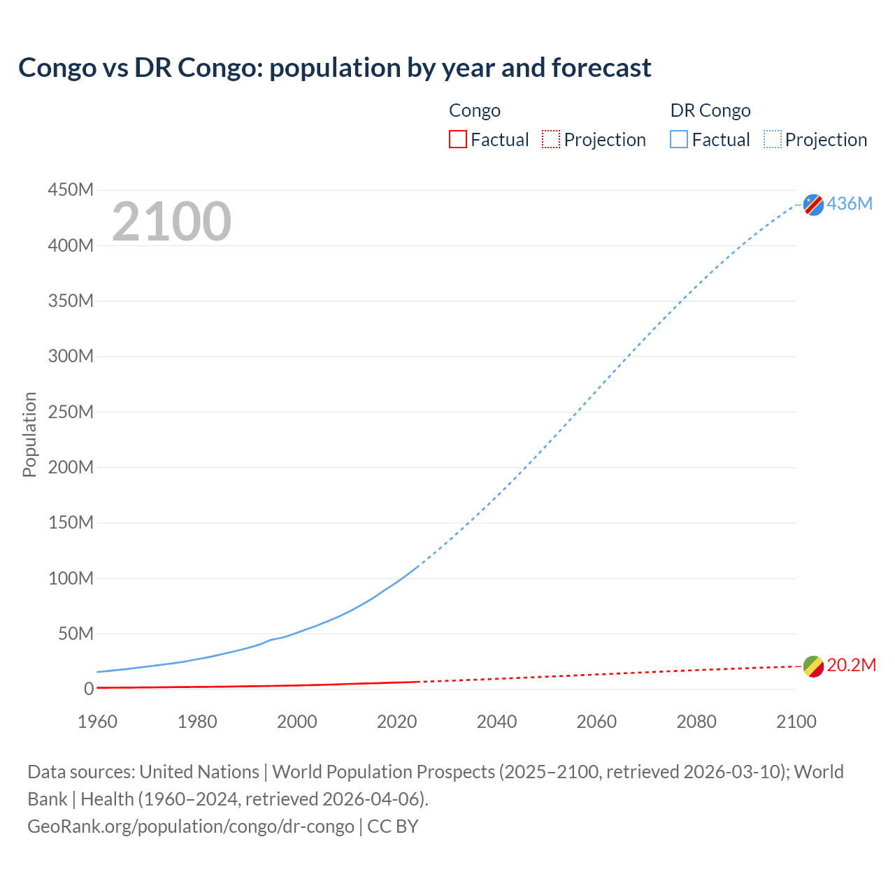 Congo vs DR Congo: population by year and forecast
