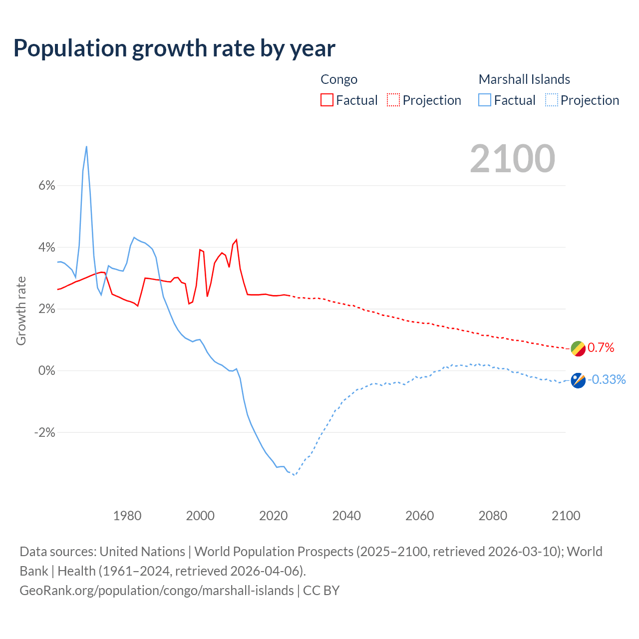 Congo vs Marshall Islands: population by year and forecast