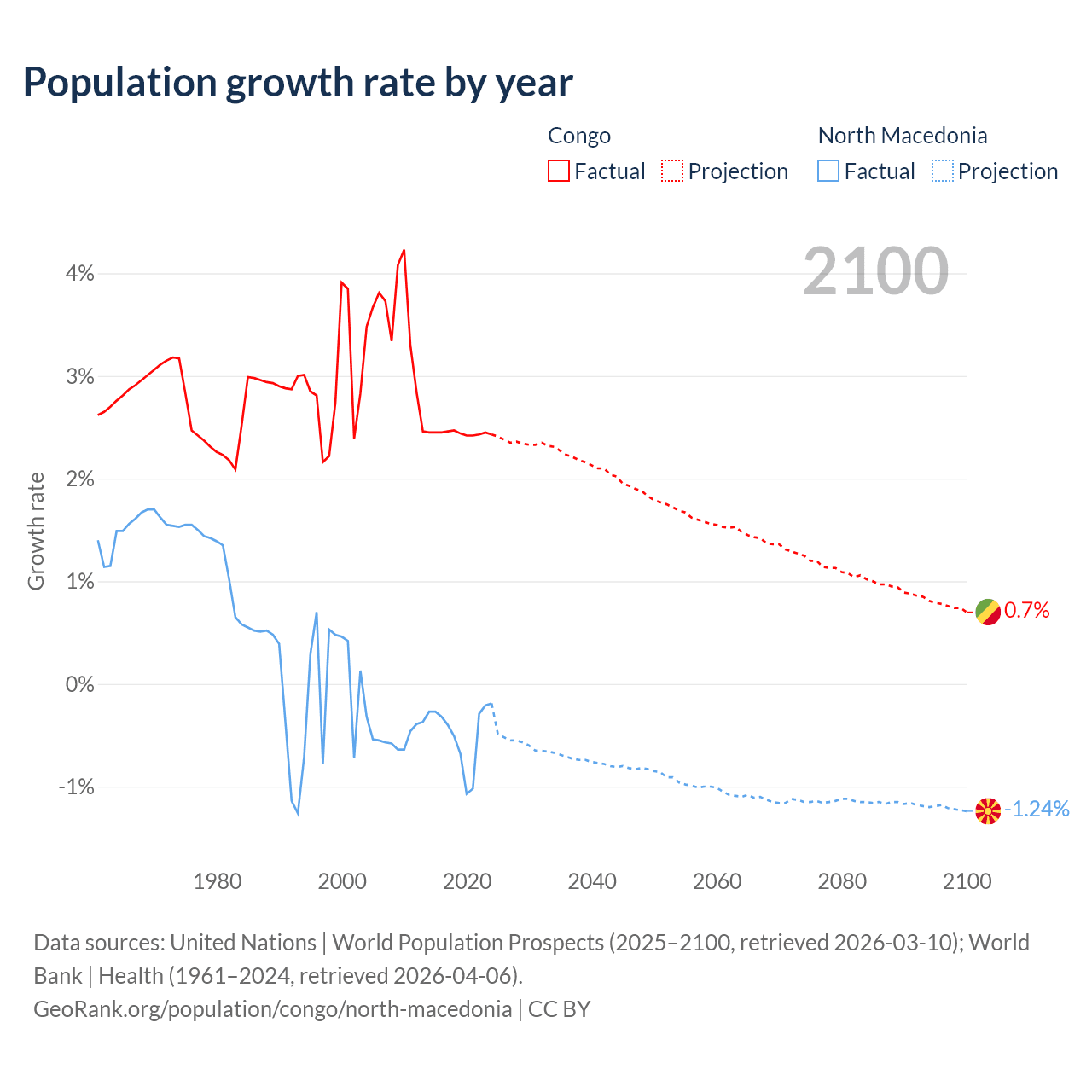 Congo vs North Macedonia: population by year and forecast