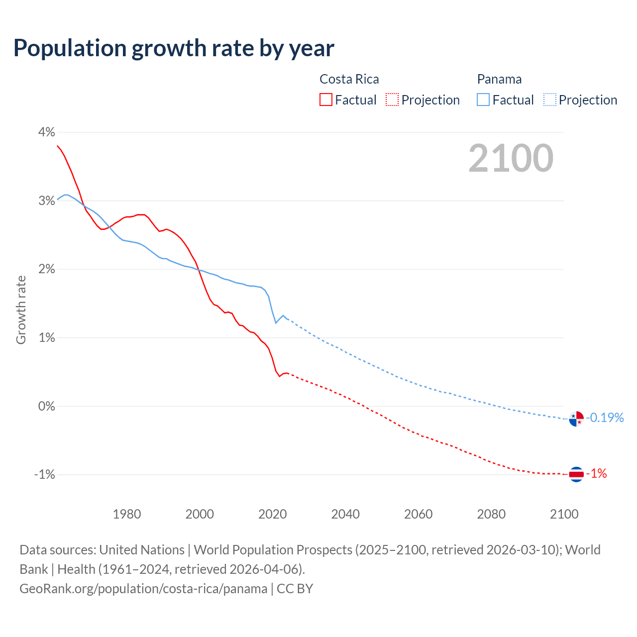 - For the last 10 years, Costa Rica has had an average growth rate of +0.77% per year vs +1.52% in Panama.
