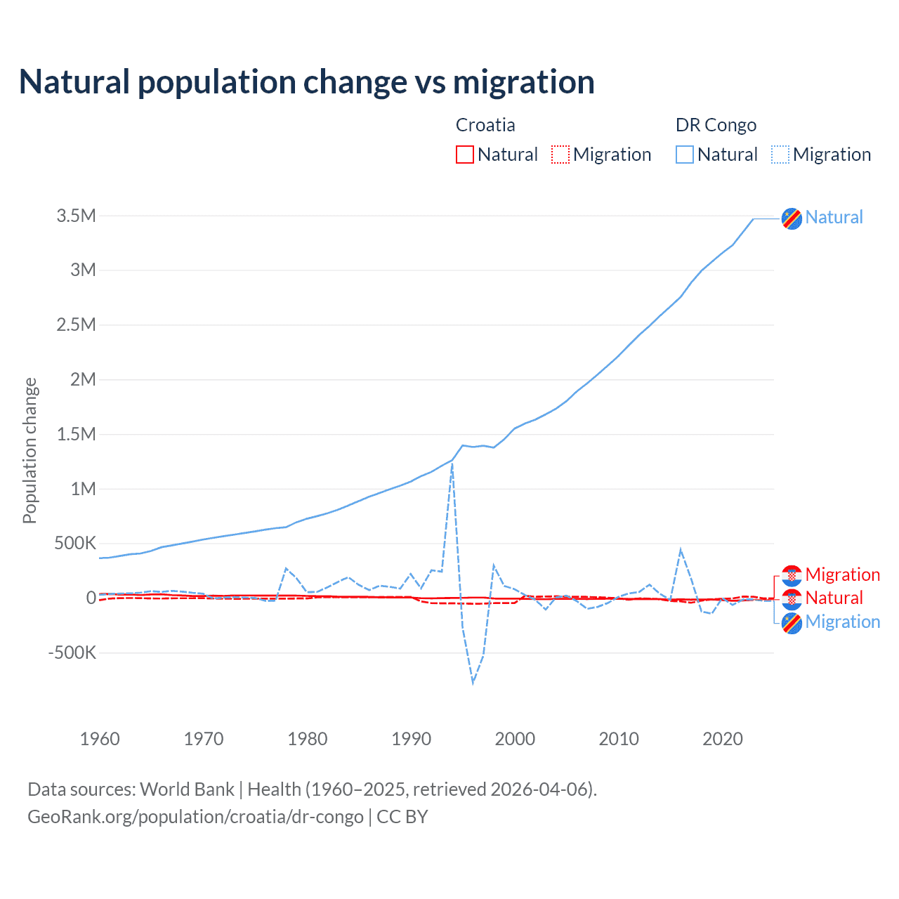 Population differences between Croatia and the DR Congo