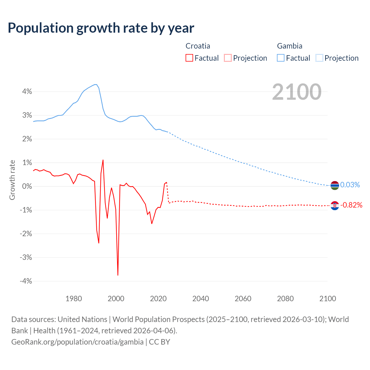 Croatia vs Gambia: population by year and forecast