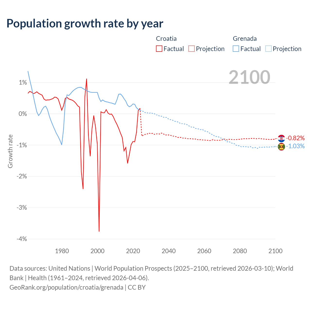 Croatia vs Grenada: population by year and forecast