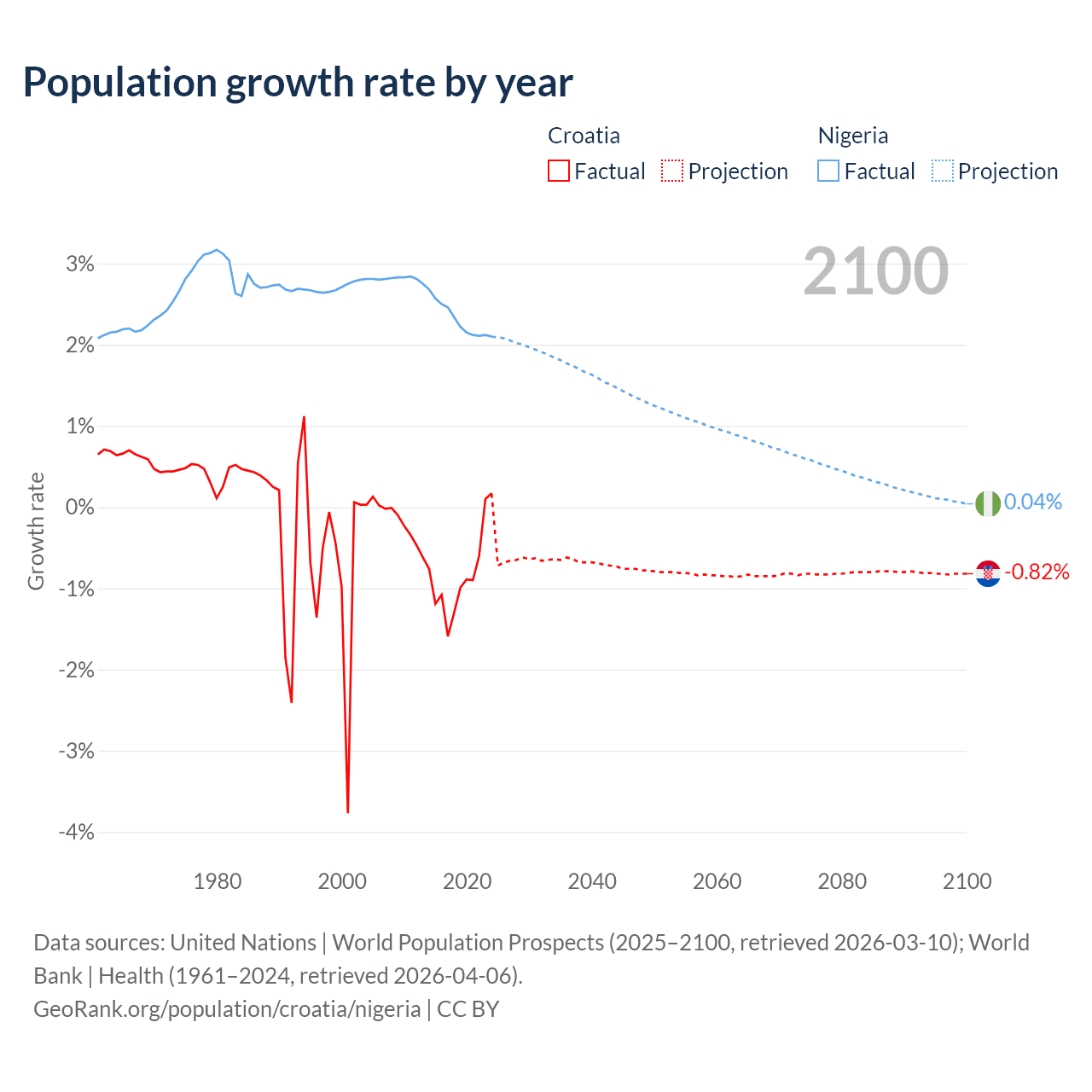 Croatia vs Nigeria: population by year and forecast