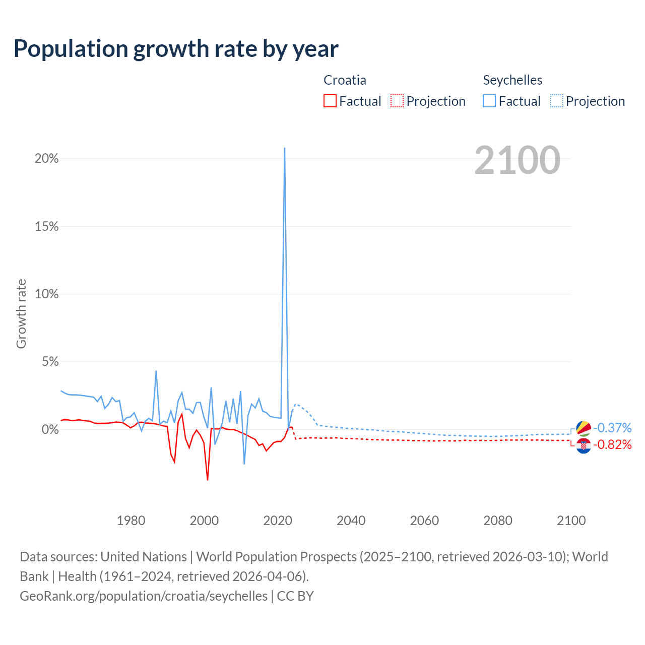 Croatia vs Seychelles: population by year and forecast