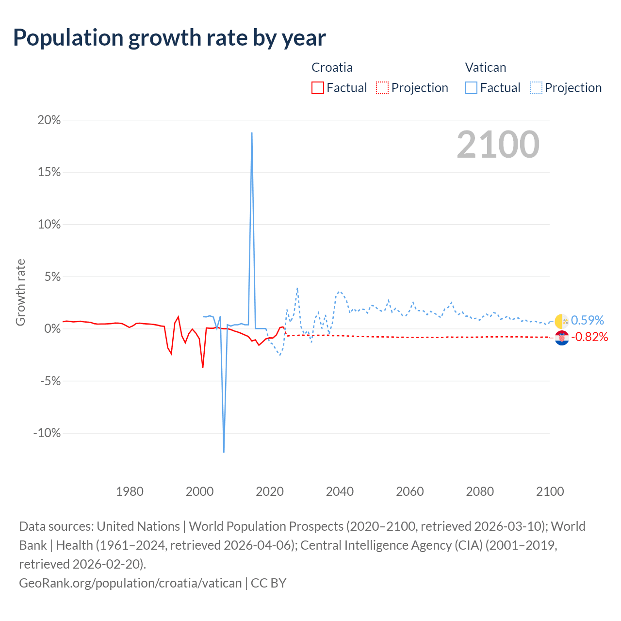 - For the last 10 years, Croatia has had an average growth rate of -0.82% per year vs +1.9% in the Vatican.