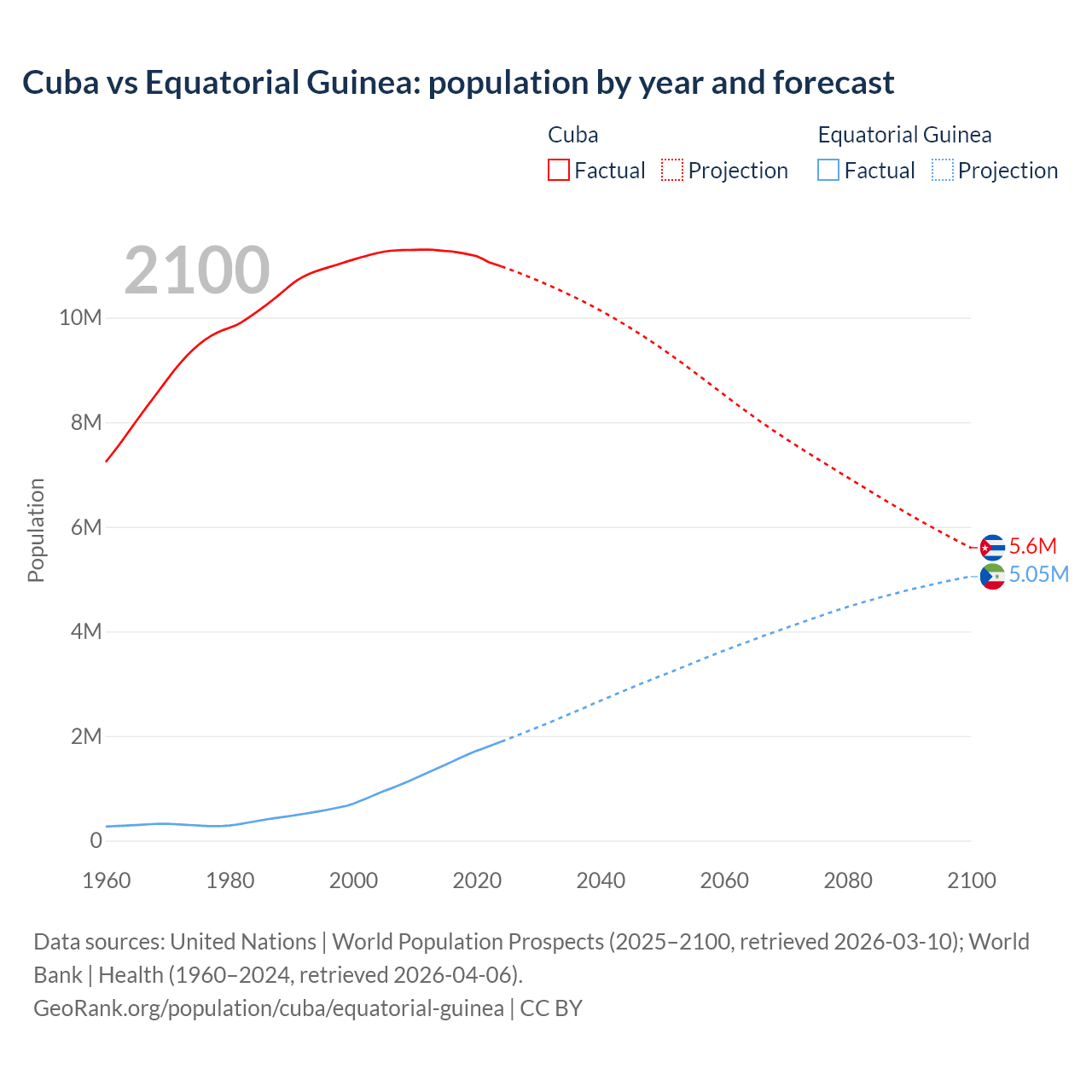 Cuba vs Equatorial Guinea: population by year and forecast