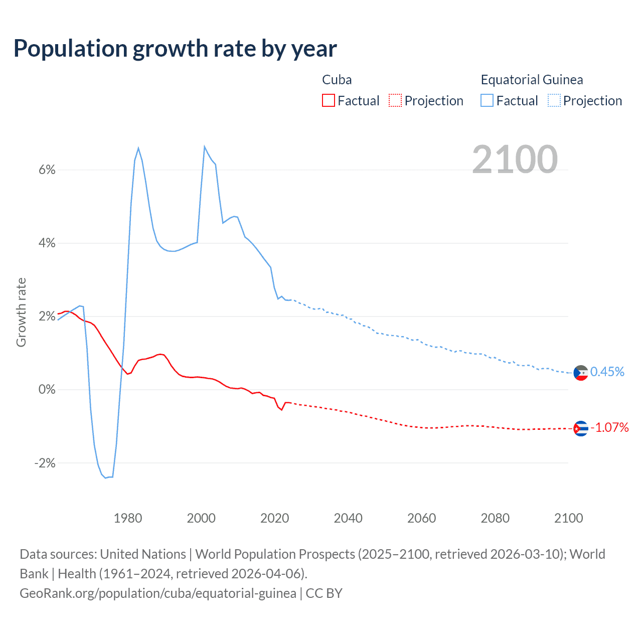 Data sources: World Bank | Health (1960–2024, retrieved 2026-04-06); United Nations | World Population Prospects (1960–2026, retrieved 2026-03-10); U.S. Census Bureau (1960–2025, retrieved 2026-02-08); Central Intelligence Agency (CIA) (2000–2019, retrieved 2026-02-20).