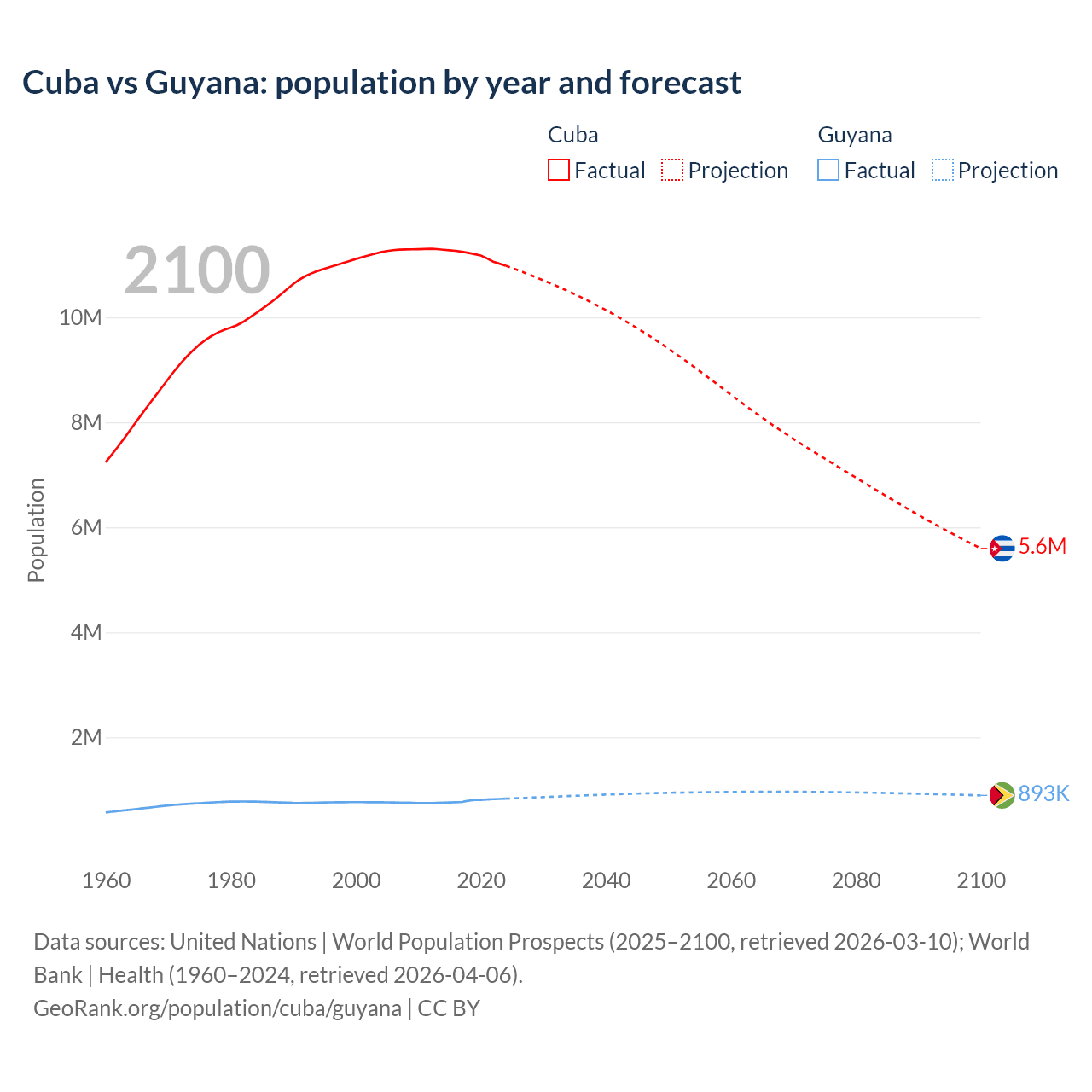 Cuba vs Guyana: population by year and forecast