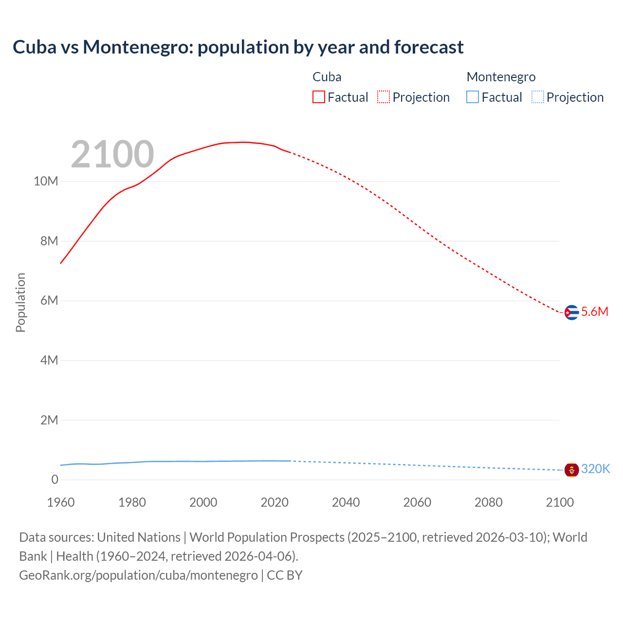 Cuba vs Montenegro: population by year and forecast