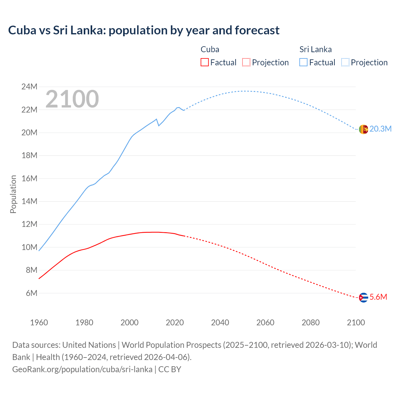 Cuba vs Sri Lanka: population by year and forecast