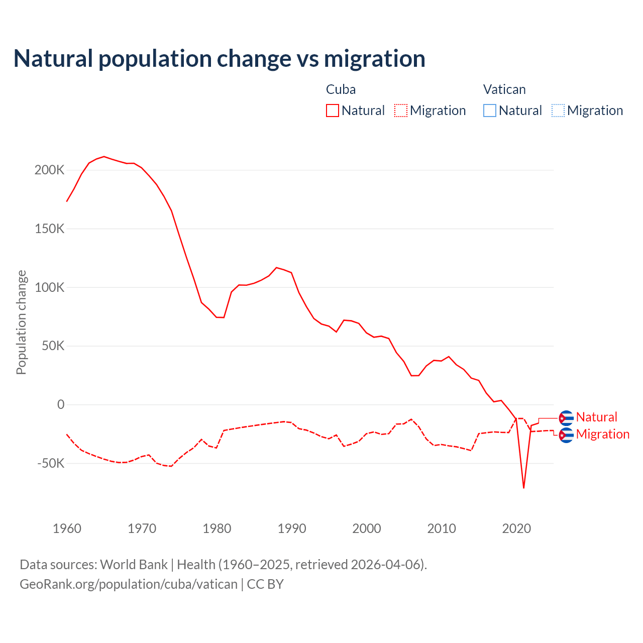 - For the last 10 years, Cuba has had an average growth rate of -0.26% per year vs +1.9% in the Vatican.
