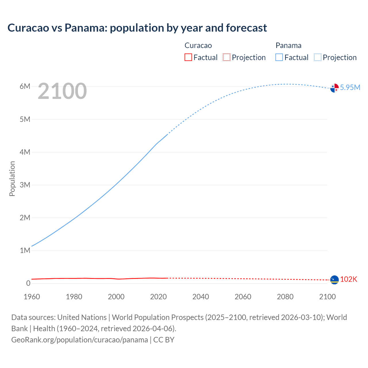 Curacao vs Panama: population by year and forecast