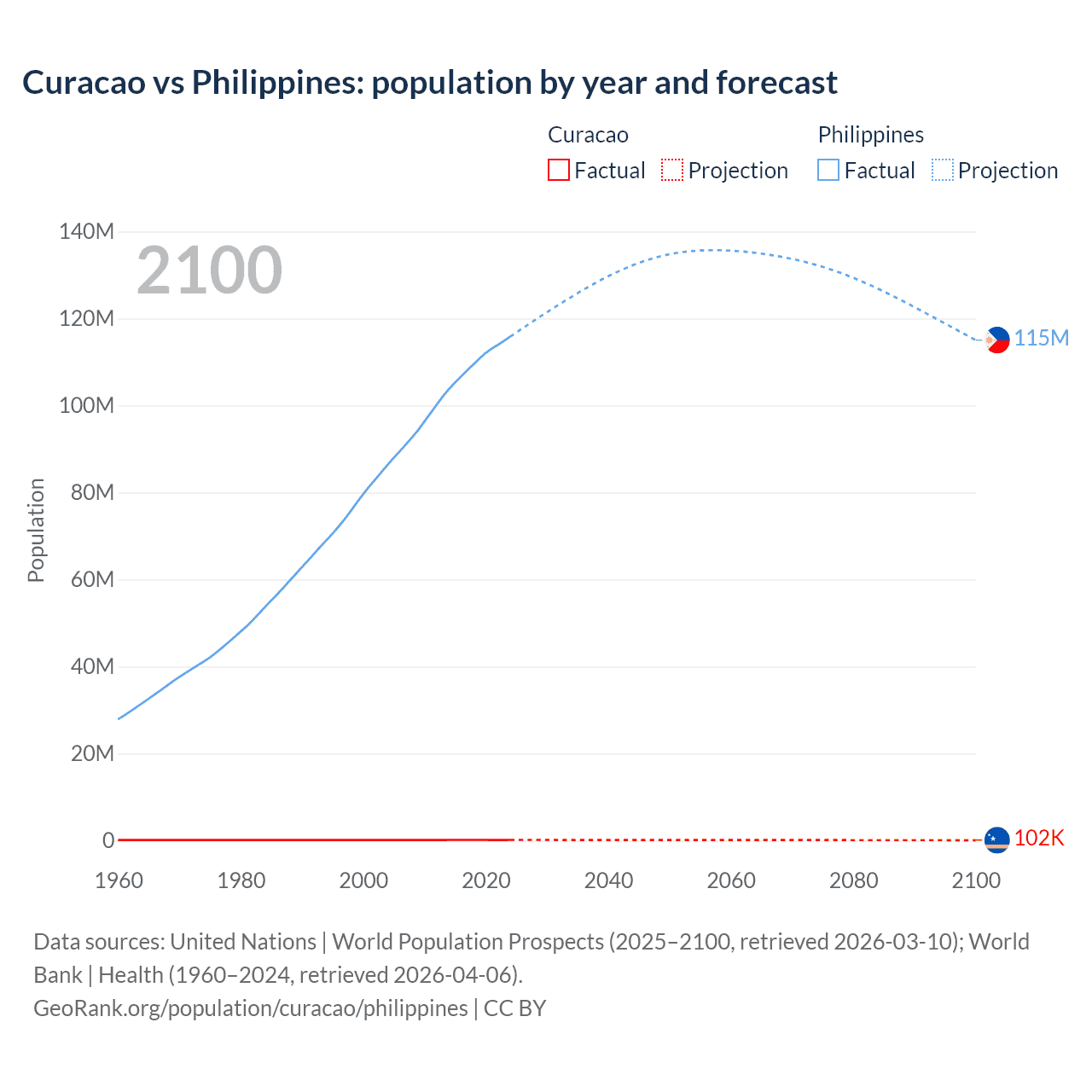 Curacao vs Philippines: population by year and forecast