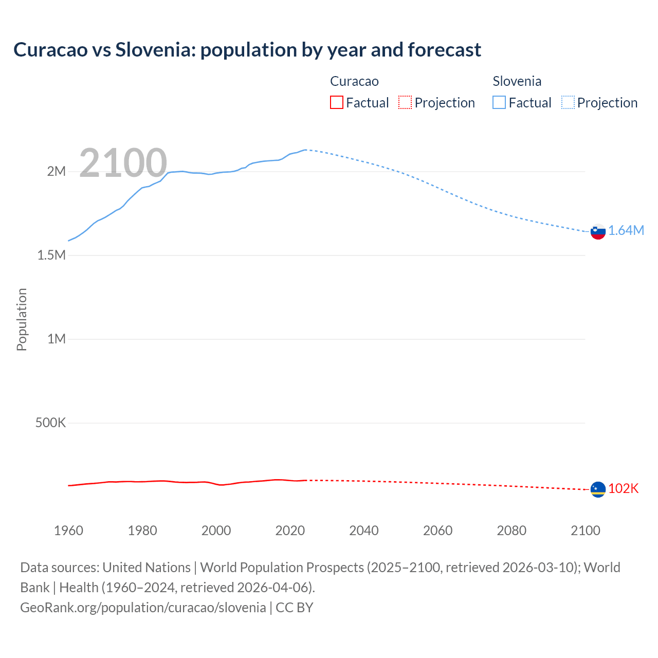 - Slovenia's population is 13.6 times bigger than Curacao's.