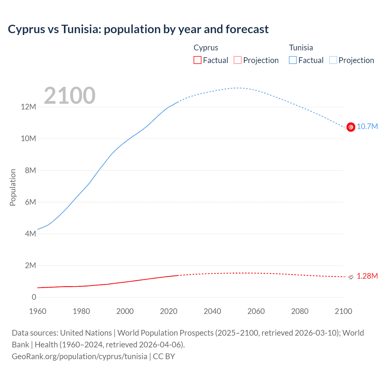 Cyprus vs Tunisia: population by year and forecast