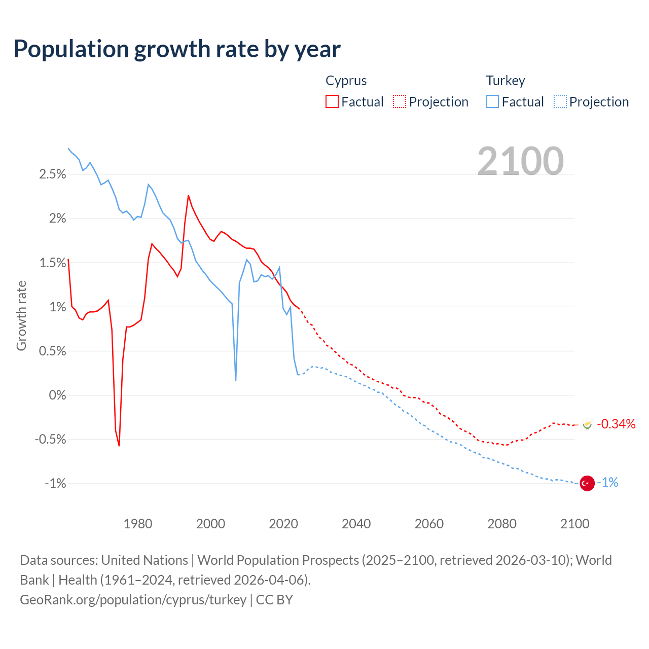 - For the last 10 years, Cyprus has had an average growth rate of +1.26% per year vs +1.06% in Turkey.