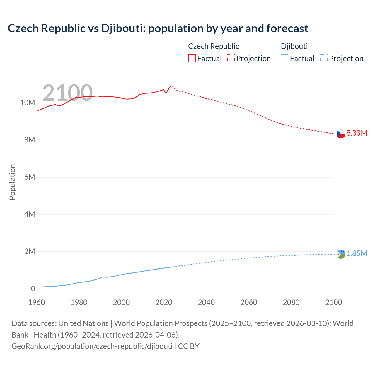 Czech Republic vs Djibouti: population by year and forecast