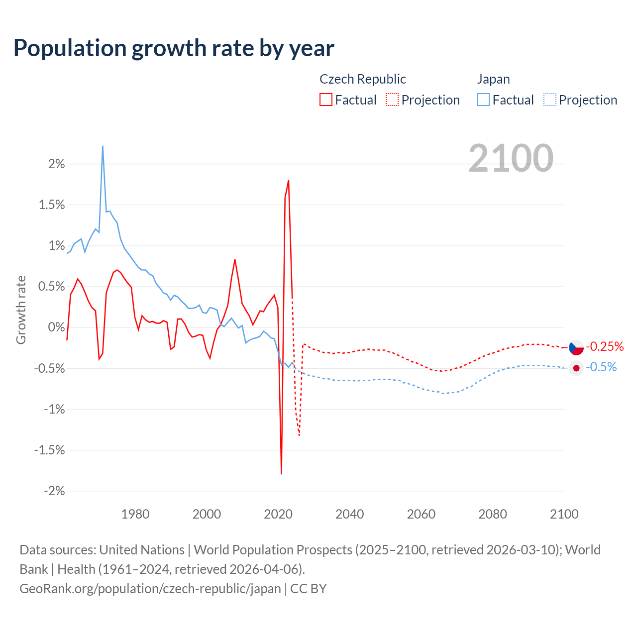 - For the last 10 years, the Czech Republic has had an average growth rate of +0.34% per year vs -0.25% in Japan.