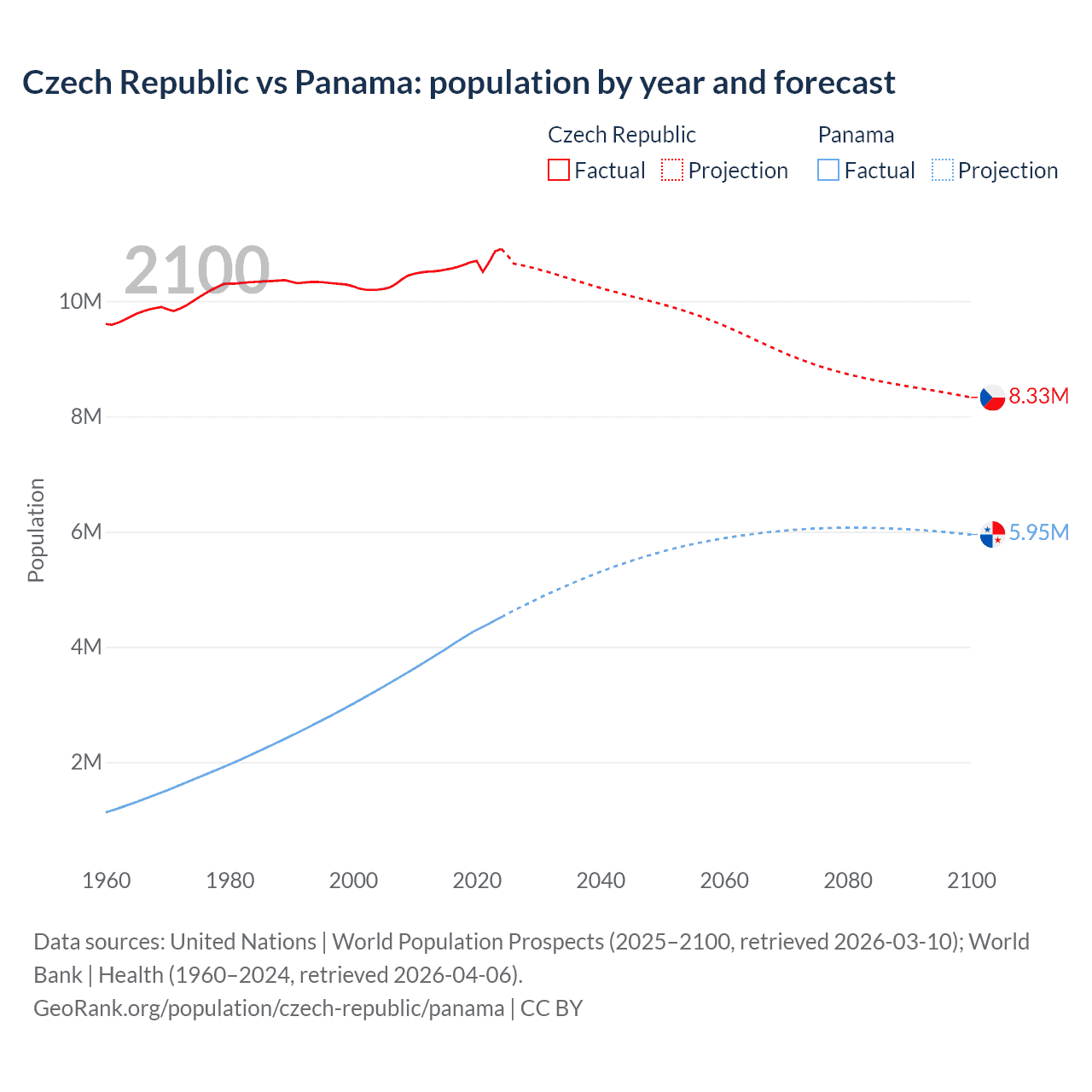 Czech Republic vs Panama: population by year and forecast