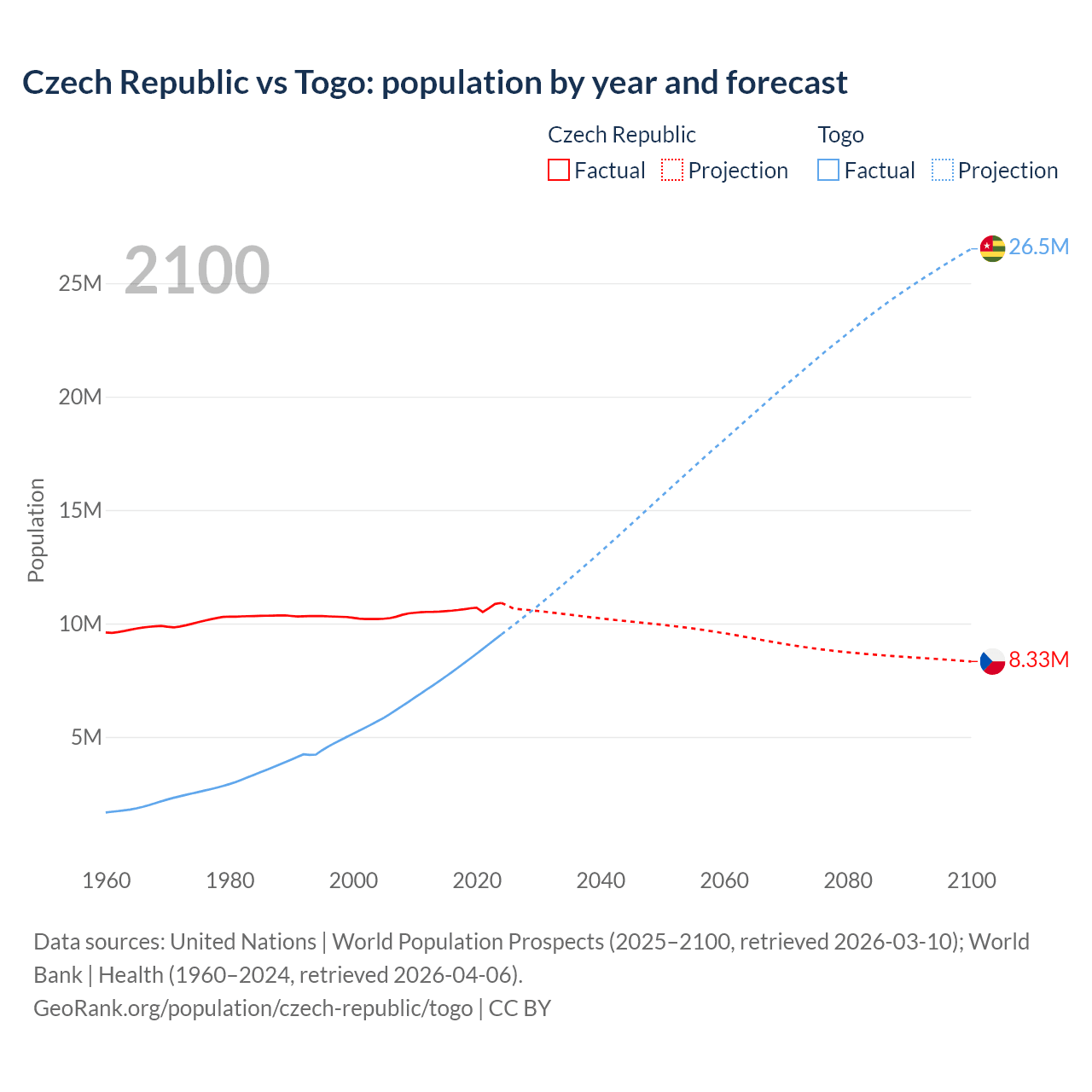 Czech Republic vs Togo: population by year and forecast