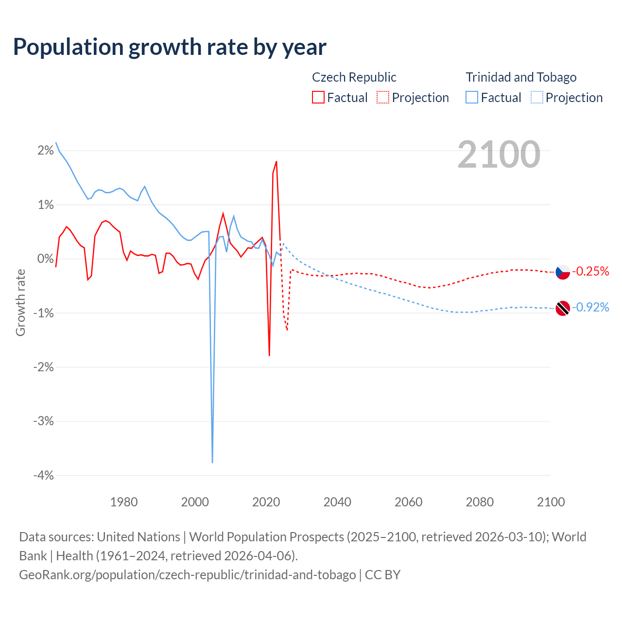 - For the last 10 years, the Czech Republic has had an average growth rate of +0.34% per year vs +0.19% in Trinidad and Tobago.