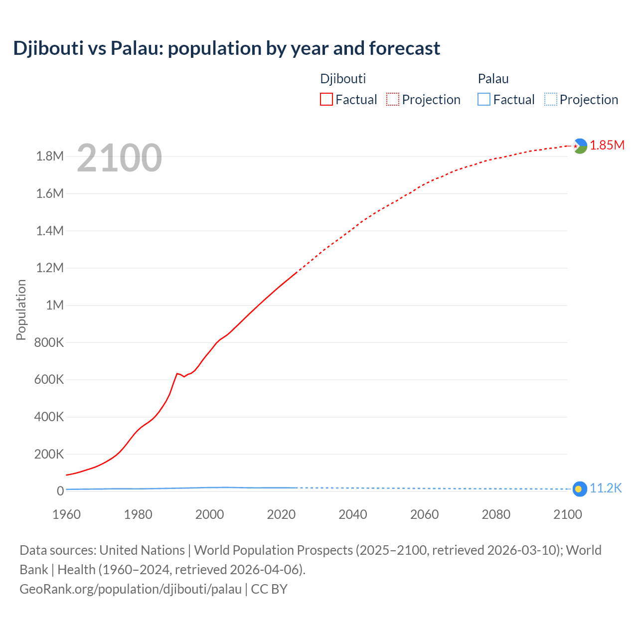 Djibouti vs Palau: population by year and forecast