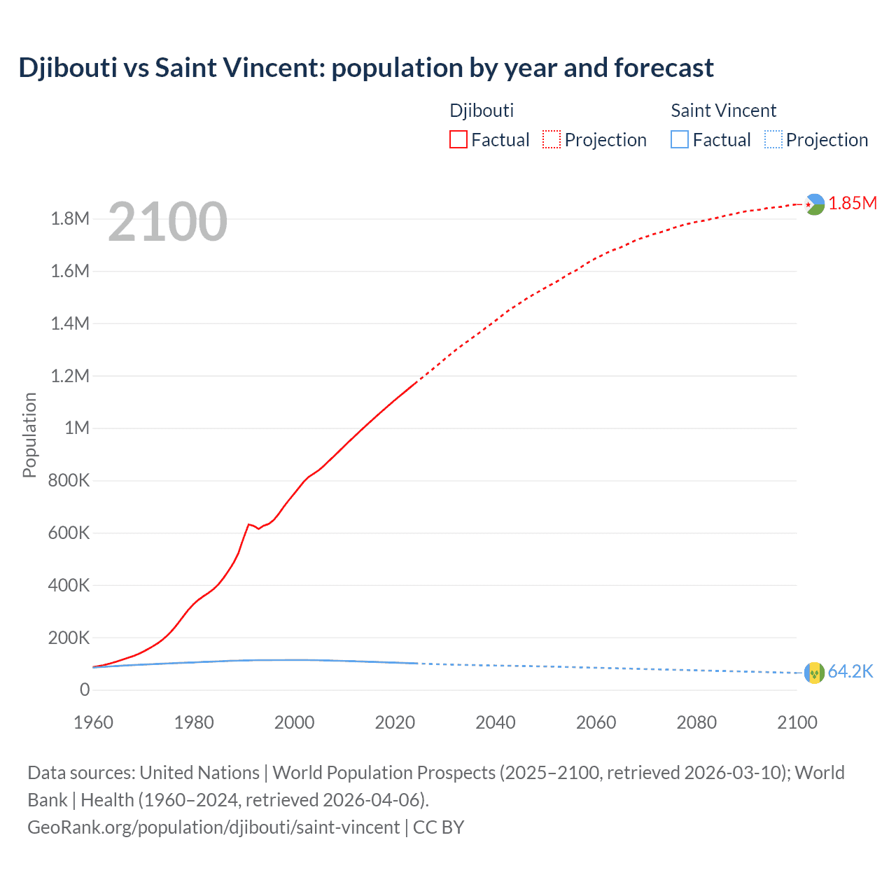 Djibouti vs Saint Vincent: population by year and forecast