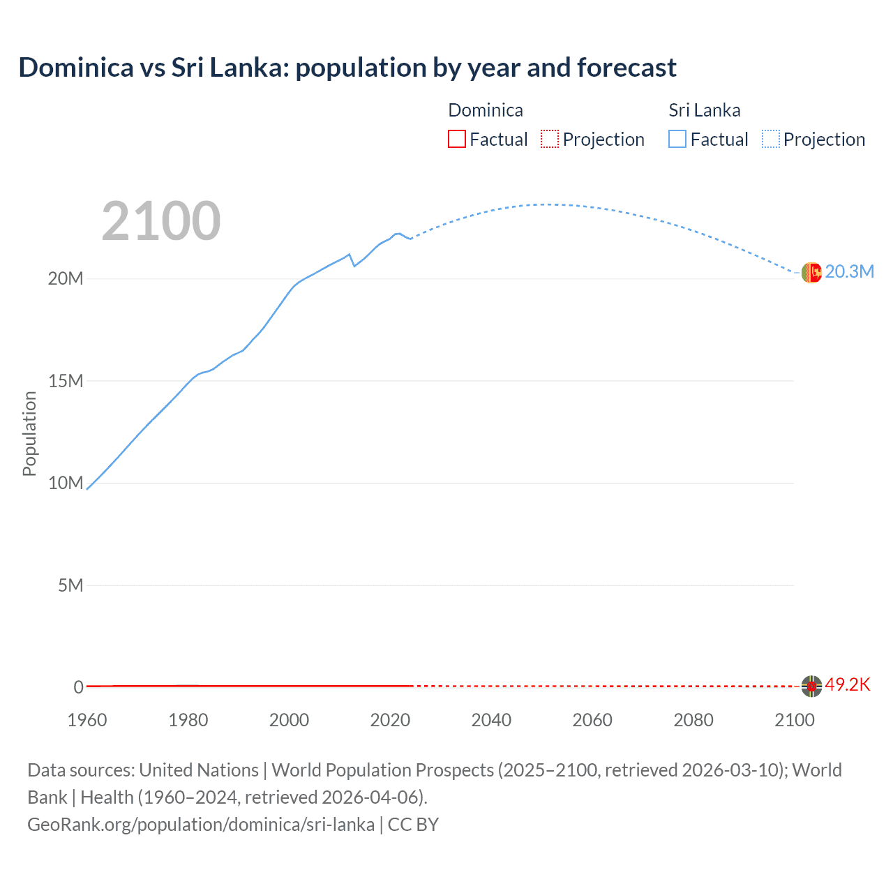 Dominica vs Sri Lanka: population by year and forecast