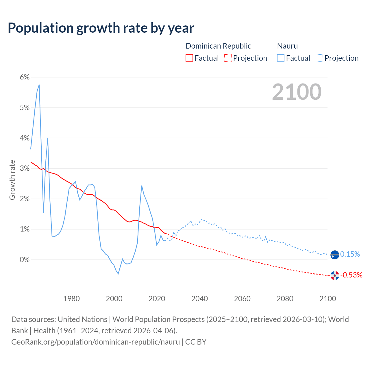 Dominican Republic vs Nauru: population by year and forecast