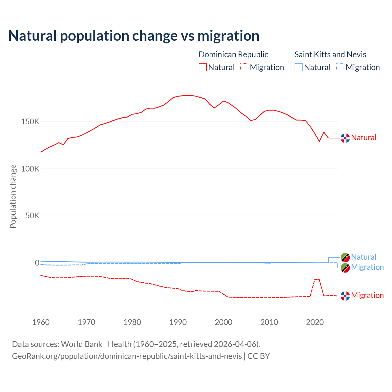 Population differences between the Dominican Republic and Saint Kitts and Nevis