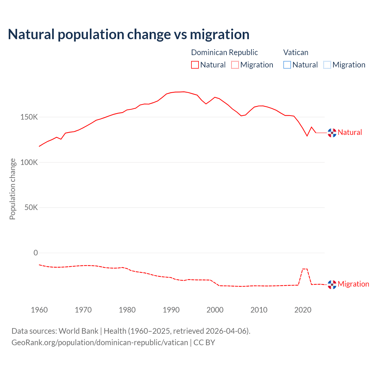 - For the last 10 years, the Dominican Republic has had an average growth rate of +1.04% per year vs +1.9% in the Vatican.